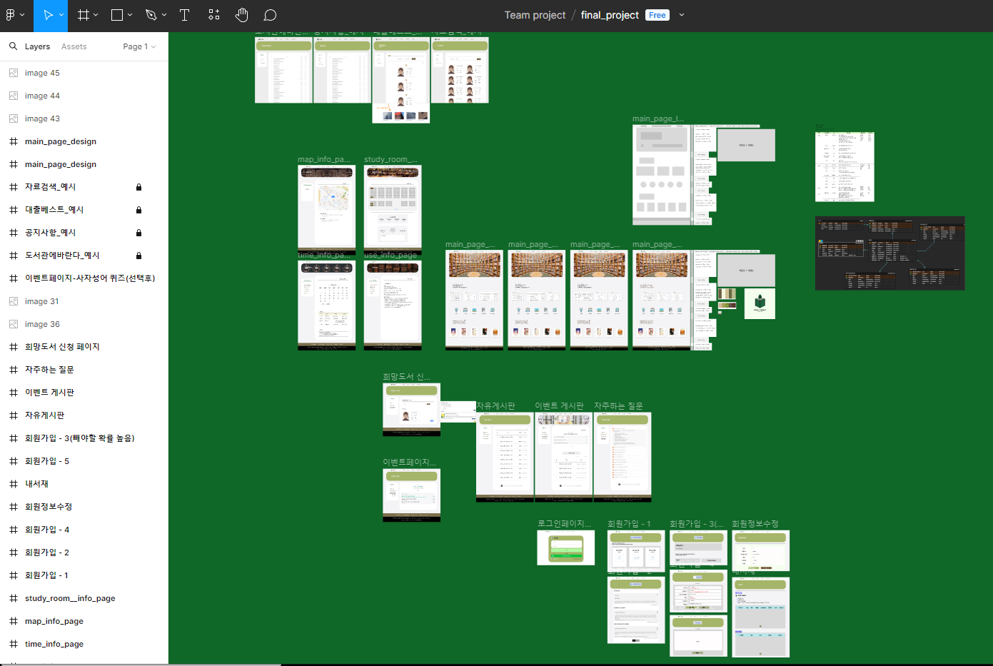 피그마로 각자 페이지를 구성하여 각 페이지의 기준을 잡았습니다