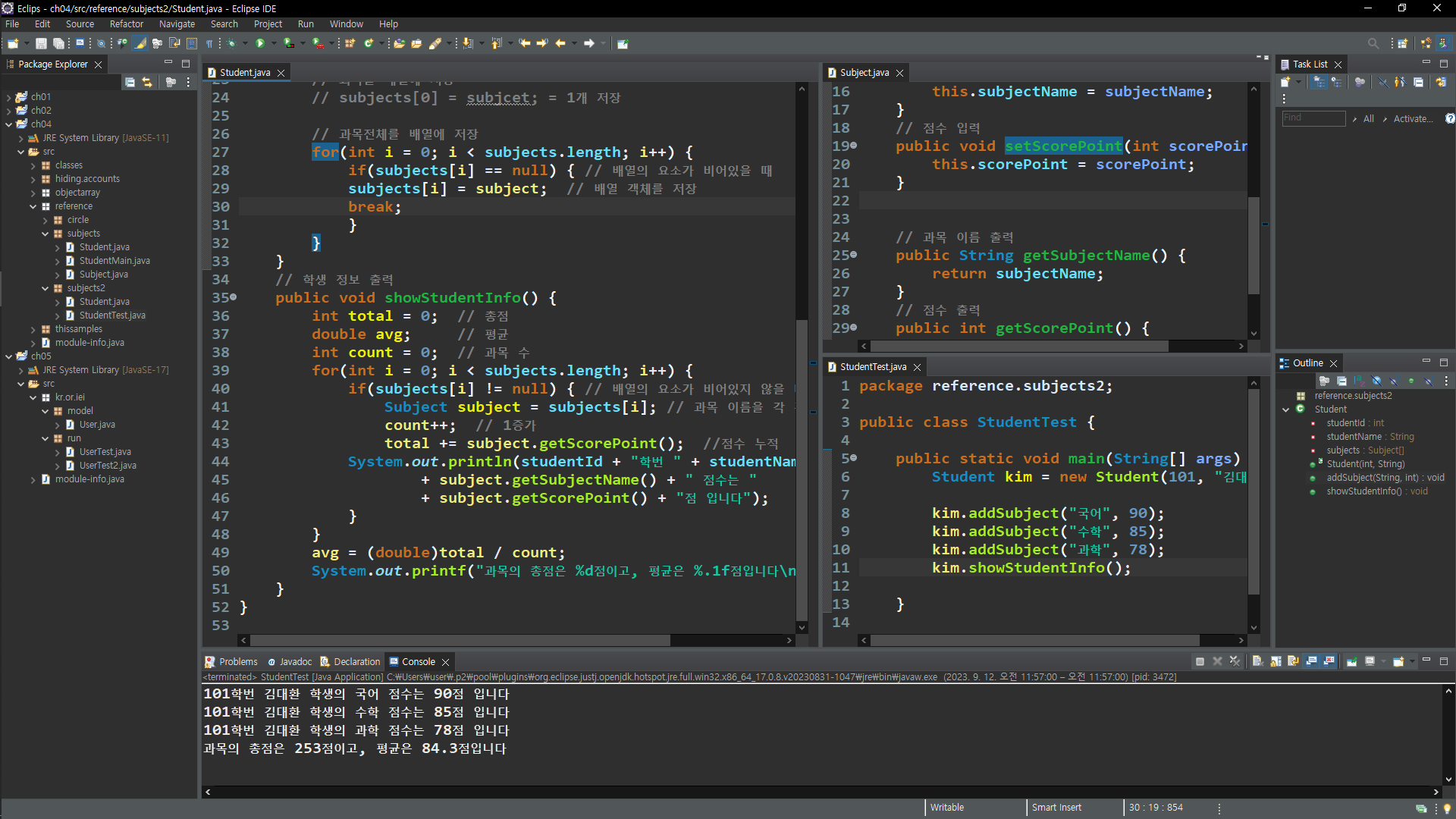 1.참조 관계(점,원)(학생, 과목)