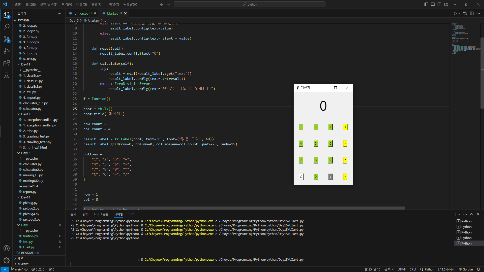 <<Python을 활용하여 계산기 만들기>>