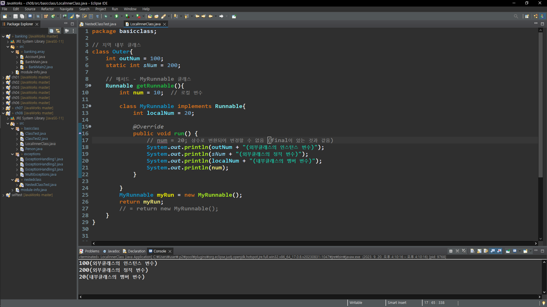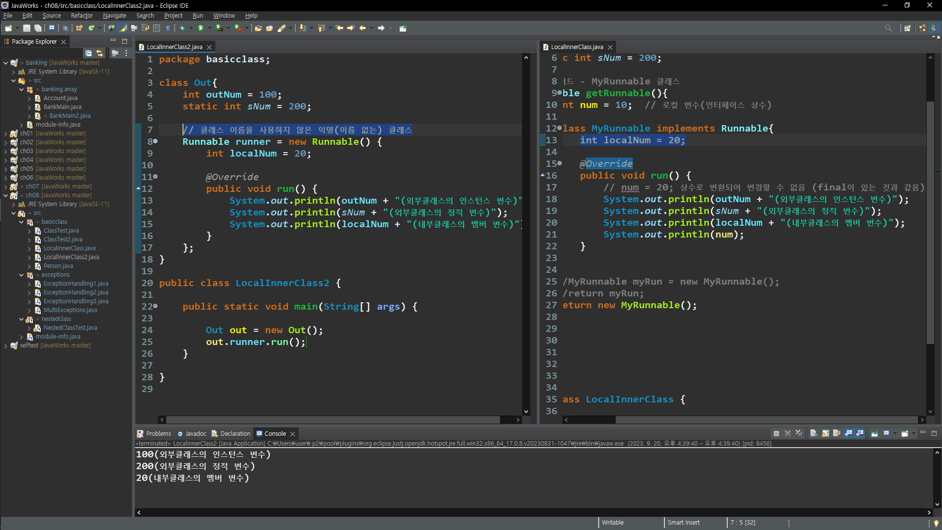 지역 내부 클래스 - 메서드 내부 클래스