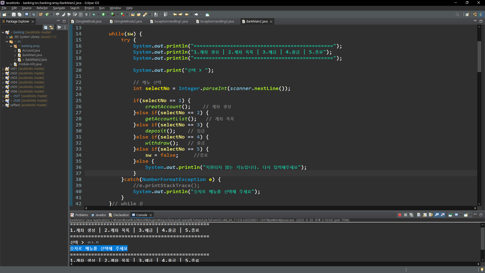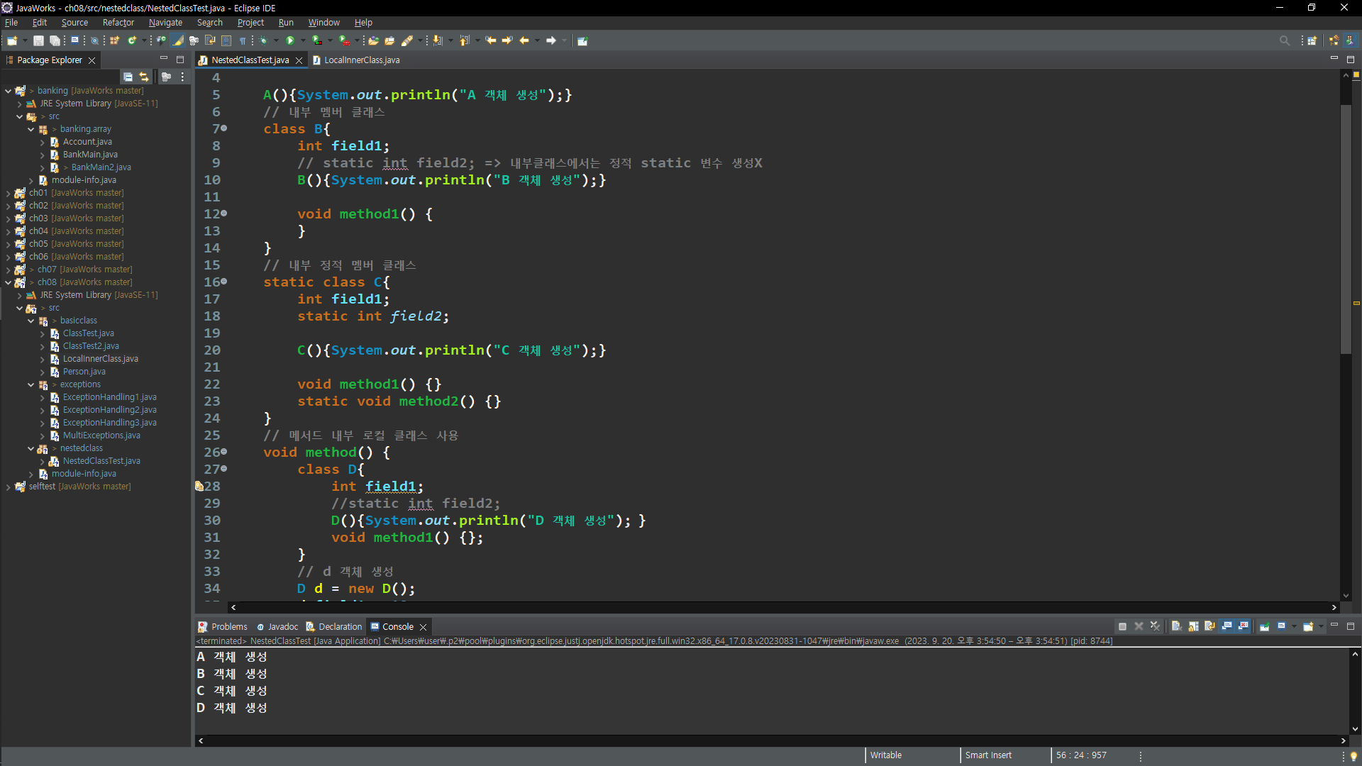 학원에서 수업으로 배우는 자바의 내용이 점점 복잡해져가고 있습니다