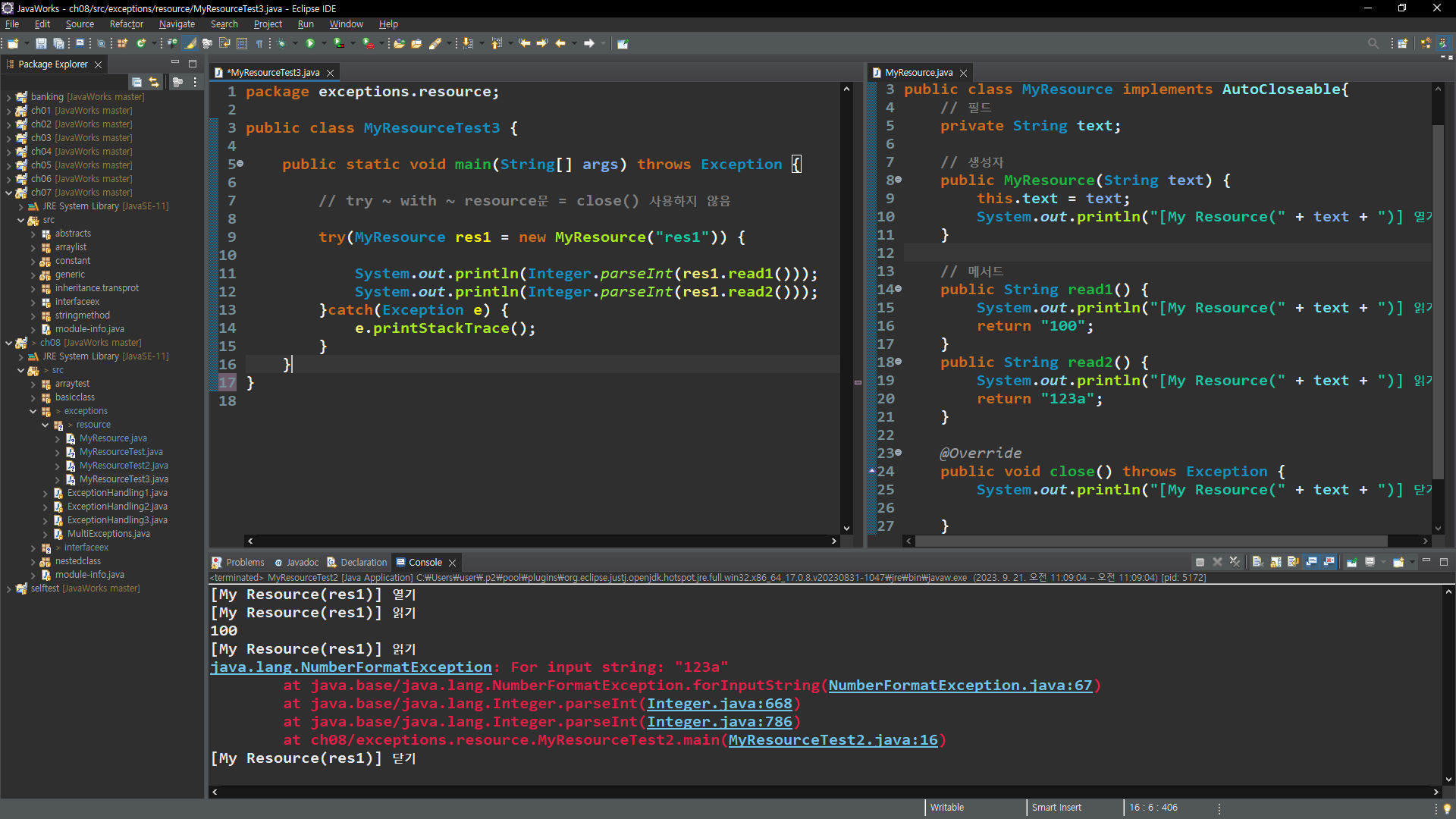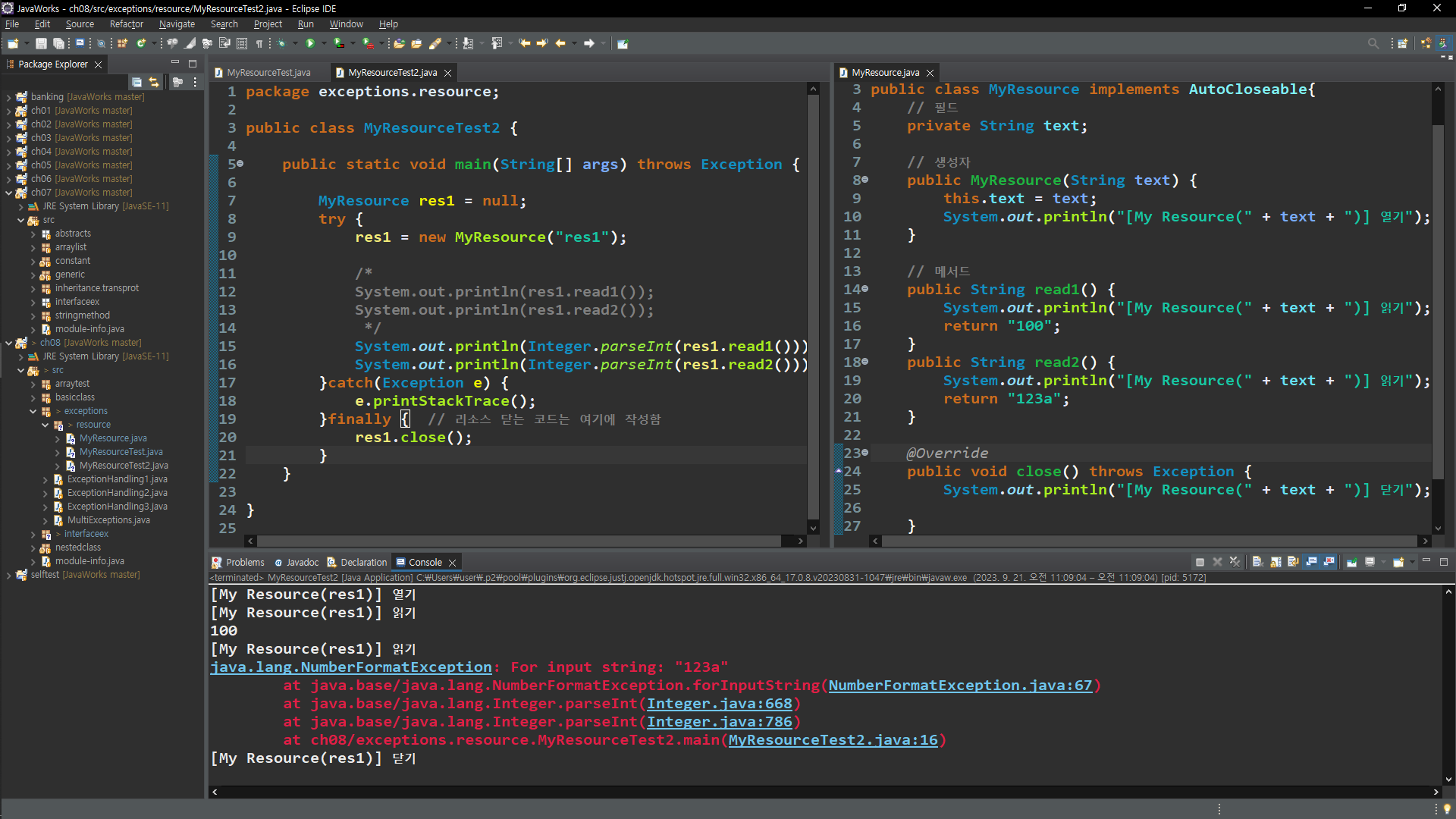 일반 예외 = 실행전에 컴파일러가 체크해 줌(알려줌)