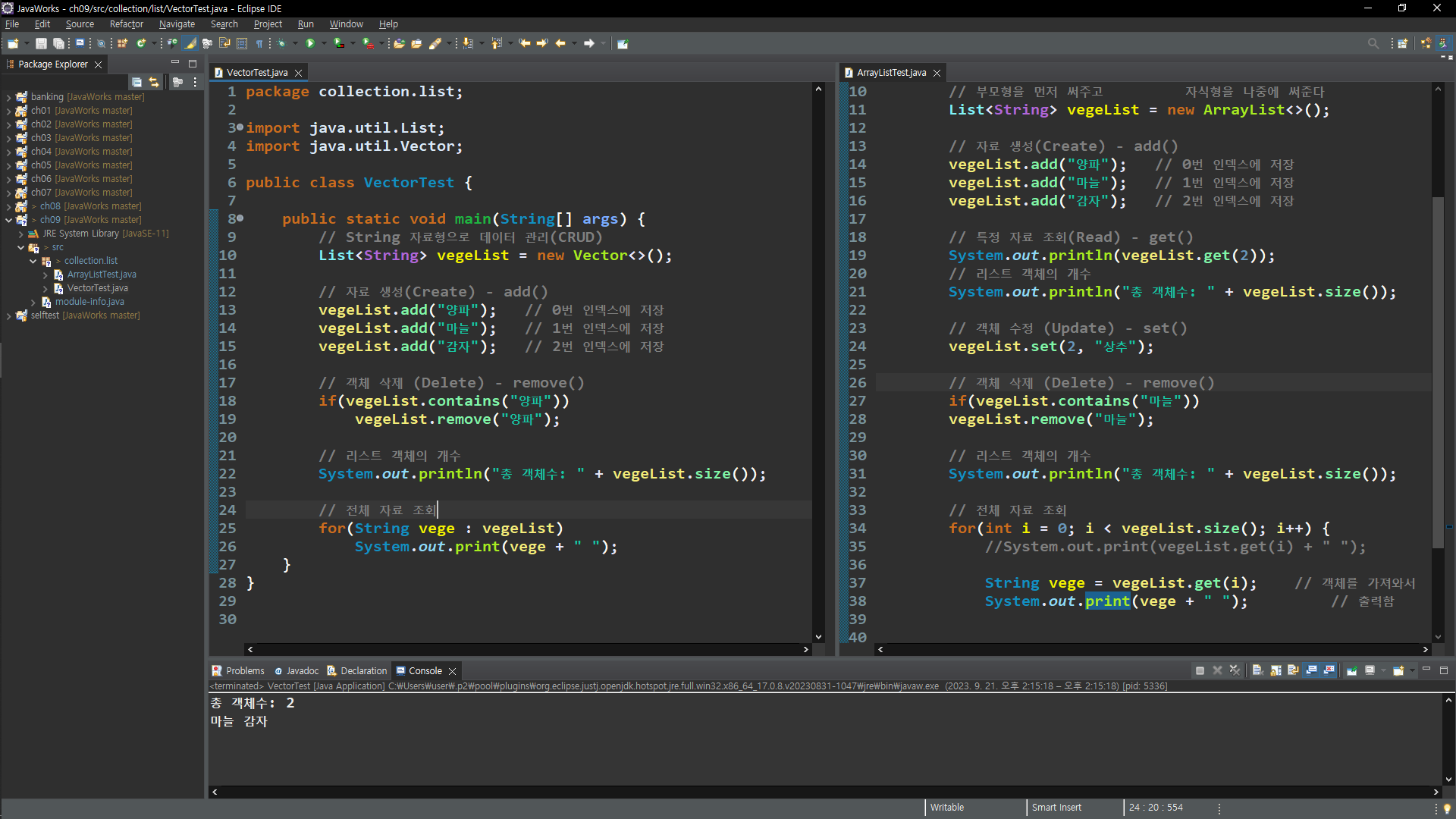 vector = 멀티쓰레드로 작업할 때 사용 -> 안전하게 객체를 추가, 삭제할 수 있음